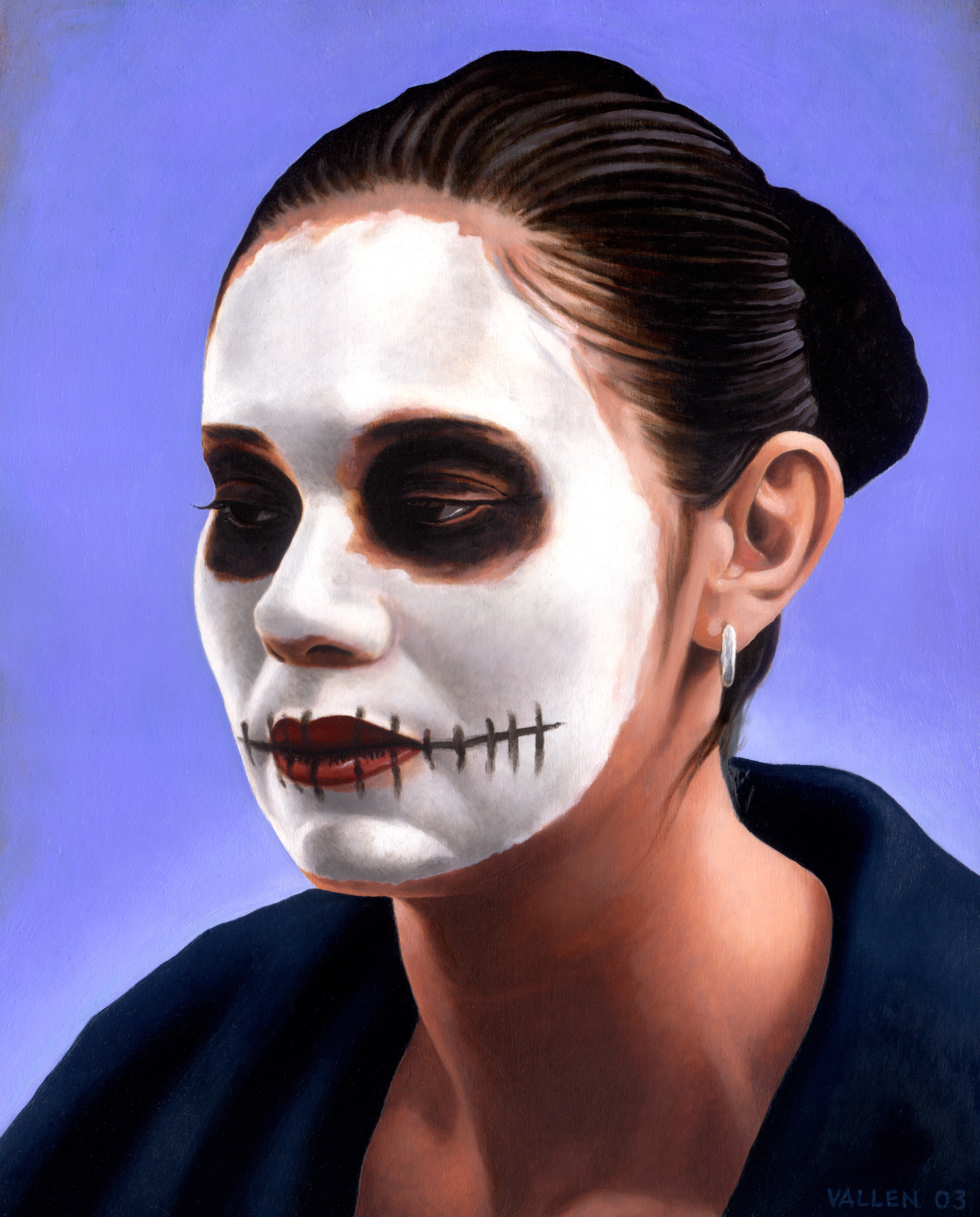 Vallen depicts a young woman celebrating Day of the Dead, the ancient Mexican holiday that honors deceased ancestors. The painting is in a private collection.